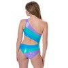 The Malibu One-Piece features an asymmetric one-shoulder neckline and a sleek cutout at the waist. The shimmer-finish fabric is colorblocked in bold tones of lilac, seafoam, and aqua blue for a modern, high-contrast look. Fully lined for comfort and constructed for a secure fit, this suit delivers confident style in and out of the water. Features: One-shoulder silhouette with diagonal waist cutout Shimmer-finish fabric with colorblock design Fully lined for coverage and support Quick-dry, stretch-infused material Available in youth and adult sizes