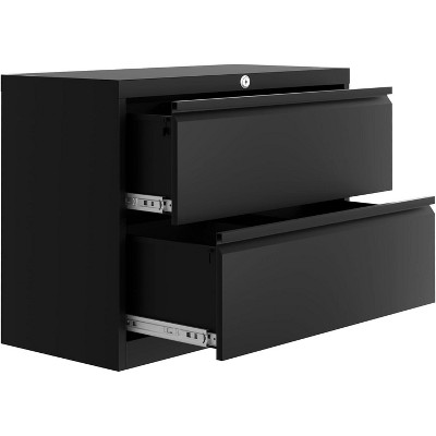 Drawer File Cabinet with Lock, Wooden Filing Cabinet with Adjustable Hanging Bar, Mobile Under Desk Storage Cabinet, Fit Legal/Letter/A4 Size, Black