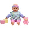 - ADORABLE 14" DOLL FOR BIG ADVENTURES: Dressed in a two-piece outfit with a headband, this realistic baby doll wardrobe set includes outfits, play blocks, and a small animal. Perfect for creating memories and imaginative play.