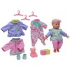 DREAM COLLECTION: MY LIL WARDROBE - This beautiful baby doll from the Dream Collection will ignite your little one's imagination and bring endless hours of creative pretend play. Dressed in a two-piece outfit with an adorable headband, this realistic-looking baby doll wardrobe set is perfect for creating special memories. Made from high-quality eco-friendly materials that are resistant to moisture, strong and durable, this 14 in. soft body doll comes in an attractive gift box, making it the ideal present for birthdays or Christmas. Perfect for learning to nurture and love with their first friend – your little one will adore dressing her up and rocking her to sleep! Suitable for kids aged 2 years and older, it's sure to create special memories that will last a lifetime. This doll set INCLUDES 1 doll, 2 pc outfit, Sleep outfit, Dress, 1 Bathrobe, Playing blocks, and 1 Small animal.