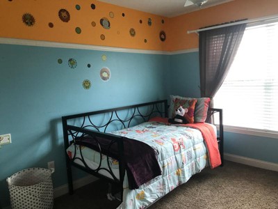 Loved it I love the colors and the fact that you can choose what side to use my daughter is so happy with her new bed set thank you