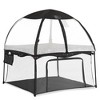 This playpen features breathable mesh walls on all four sides, which allow for full visibility and optimal airflow, so you can always keep an eye on your baby while they play or sleep. The mesh construction is designed to prevent overheating, making it ideal for warmer days. It’s equipped with a UV-blocking canopy that provides protection from harmful sun rays, making this playpen perfect for outdoor use, such as on the patio or at the park.