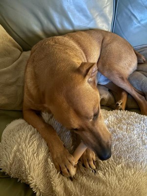 Gave this to our friends dog and he enjoyed it so much! He was hesitant at first and not sure if he wanted it however after getting a smell of it he went to town on it. It's a nice size bone nothing too much but also big enough for him to chew on since he is such a big dog. Also the package is convenient to reseal to keep them fresh and dry.