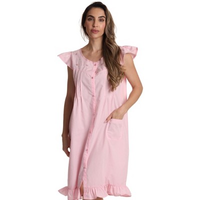 • DREAM IN STYLE: Make hitting the sheets the prettiest part of your day. This sleeveless nightdress for women inspires smiles whenever you slip it on with its pleated detail, lovely button front, pico trim edge, and beautiful floral embroidery on the front and back.
