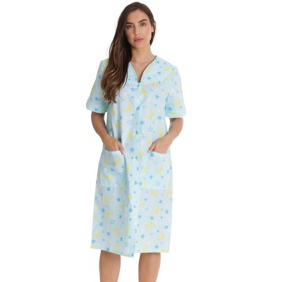 • DESIGNED FOR COMFORT: Slipping into this seersucker housecoat robe is an experience in pure comfort. We’ve used a breathable mix of 55% cotton and 45% polyester to design these house robes for women, and given them an easy fit snap front closure for stress-free wear.