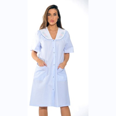 Product Name: Dreamcrest Womens Short Sleeve Duster, Seersucker Plaid Housecoat/Women Sleepwear Zip Front Nightgown