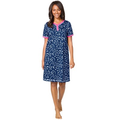 Dreams & Co. Long-Sleeve Henley Print Sleepshirt - S, Evening Blue Flowers