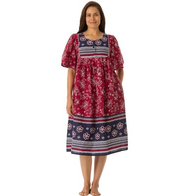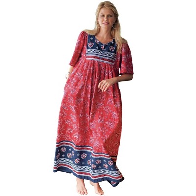 Enjoy ultimate comfort with this delightful lounge dress featuring short sleeves and V-neck. Relaxed fit in a flattering trapeze shape offers plenty of mobility for all-day wear. Maxi length provides added modesty and style for lounging around the house or casual outings. Convenient side pockets for easy storage of small essentials. Side hem slits for easy mobility. Available in an average length of 52" and a petite length of 48" to suit your style perfectly. Crafted from a soft cotton/poly blend for a comfy feel all day long. Easy care, machine washable for your convenience. Complete your cozy look by pairing it with some snug slippers and a soft robe. Imported.