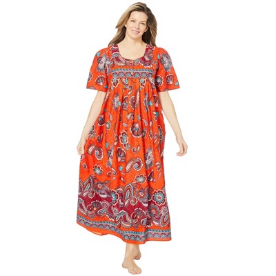 Enjoy ultimate comfort with this delightful lounge dress featuring short sleeves and V-neck. Relaxed fit in a flattering trapeze shape offers plenty of mobility for all-day wear. Maxi length provides added modesty and style for lounging around the house or casual outings. Convenient side pockets for easy storage of small essentials. Side hem slits for easy mobility. Available in an average length of 52" and a petite length of 48" to suit your style perfectly. Crafted from a soft cotton/poly blend for a comfy feel all day long. Easy care, machine washable for your convenience. Complete your cozy look by pairing it with some snug slippers and a soft robe. Imported.
