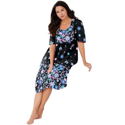 Dreams & Co. Petite Long T-Shirt Lounger - L, Black Bouquet