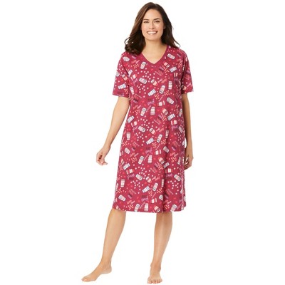 Dreams & Co. Short Floral Print Cotton Gown - M, Classic Red Cardinals