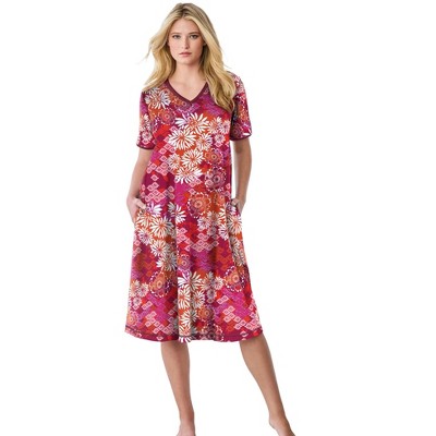 Dreams & Co. Short Floral Print Cotton Gown - M, Plum Burst Bouquet