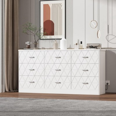 Dresser for Bedroom, 4 Drawer Small Dresser with Charging Station for Living Room, Chest of Drawers, White