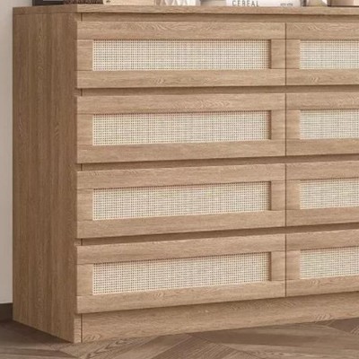 Dresser for Bedroom, Rattan 6 Drawer Dresser for Closet, Double Wood Dressers & Chest of Drawers, For Bedroom/Living Room/Entryway, Natural