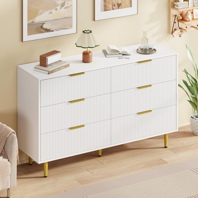 Dresser for Bedroom with 6 Drawers, 47.2'' Wide Chest of Large Decorative Drawer Front with Large Clothes Storage Cabinet for Living Room, White