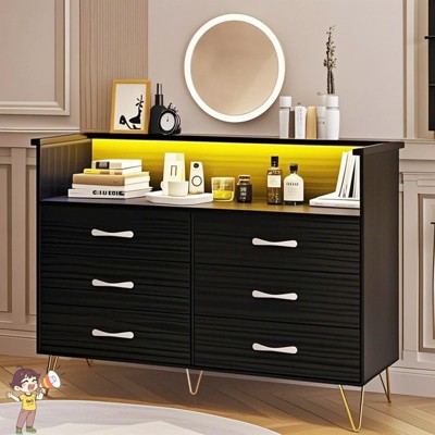 • LED Lights for Modern Style: The black dresser with LED lights features multicolor RGB strips that are app controlled. Adjust color and brightness; sync to your favorite music for a fun, vibrant ambiance and make your bedroom dresser stand out in any space