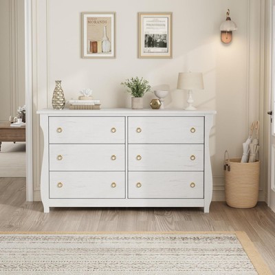 - Elegant Curved Leg Design: This 6-drawer dresser features beautifully crafted curved legs, adding a touch of French-inspired elegance to your space. The natural wood finish and rattan accents create a warm, inviting aesthetic that complements any decor style