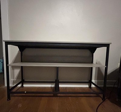PRODUCT DIMENSIONS: The bedroom TV stand overall size is 39” L x 11.8” W x 22.5” H. It is suitable for flat screen and curved TVs up to 50 inches. The under top shelf is reinforced with a thicker metal tube to enhance its bearing capacity. The wood top of the TV stand for 55 inch TV can comfortably hold up to 150 lbs, while the shelve is capable of holding up to 30 lbs. You can safely place items such as printers, table lamps, and tall TV stands on this dresser tv stand.