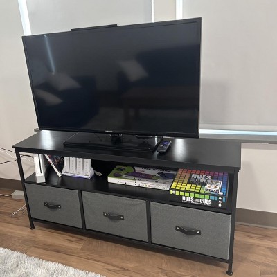 DRESSER TV STAND: The TV stand and drawer are a perfect combination, offering both functionality and style. This 55 inch TV stand features a grey wood grain finish, which adds rustic charm to your living room or bedroom. With its 3 foldable fabric drawers, the dresser TV stand provides ample storage space while also protecting your privacy. Simple yet stylish design allows it to effortlessly blend in with any home style and decor.