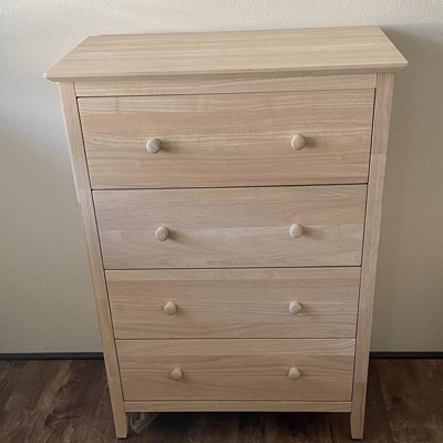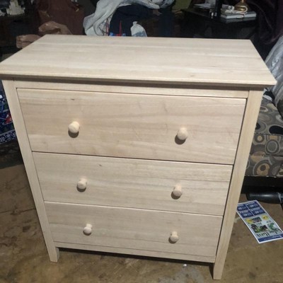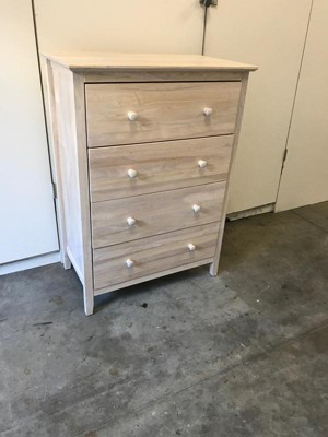 This is a simple, clean looking dresser perfect for our kids bedroom. It's light weight and fairly easy to assemble as long as you've had some experience putting together furniture! My only issue is this - via both computer and phone - this unfinished dresser had a white washed look to it in the pics, which I liked and was the reason I chose this over a similarly priced dresser. When it arrived, I noticed that the dresser is actually natural color wood. I will most likely white wash paint it myself but would have been great if it arrived like that already!