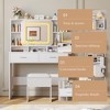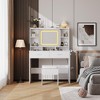 - Salon-Perfect Lighting Every Day - Elevate your beauty routine with this vanity desk featuring adjustable 3-mode LED lighting! Simply tap the switch to cycle through warm, cool, and natural daylight modes, or hold it to dial in the perfect brightness. Achieve flawless, professional-looking makeup anytime – right at your dressing table. Enjoy salon-caliber lighting daily!