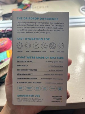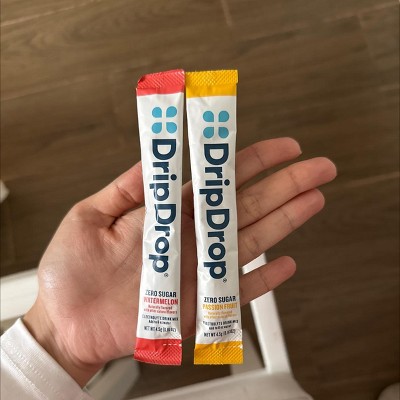 DripDrop Zero Sugar Hydration Powder Vegan Electrolyte Supplements - Watermelon, Lemon Lime, Peach, Passion Fruit - 1.9oz/12ct