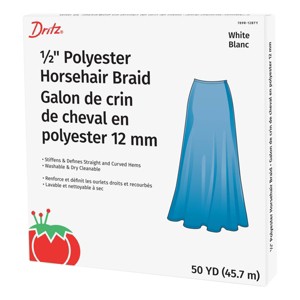 Use the Dritz 1/2" Polyester Horsehair to add body to your floor-length skirts, gowns and other dresses without adding weight to the hem. This polyester horsehair braid can stiffen and define straight or curved hems. Made of 100% polyester, this horsehair braid is washable and dry cleanable.