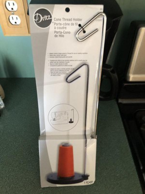 [This review was collected as part of a promotion.] Dritz Cone Thread Holder (Heavy Duty) is great for holding those large spools! Easy to assemble (just stick rod in and tighten with screwdriver), plop spool on the base, thread through rod and sewing machine... Then let it roar! The base is weighted so it will not shift around the table, the thread does not get caught on anything (within reason), and the spool stays stationary.