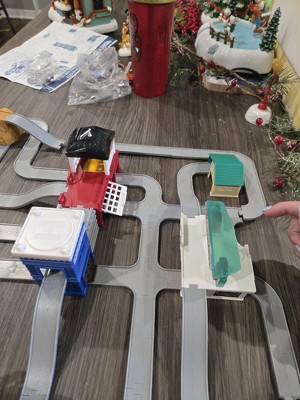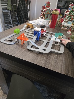 - 140-piece Set: Includes 6 toy vehicles, 116 tracks, a gas station, a construction crane, a bridge, and so much more.