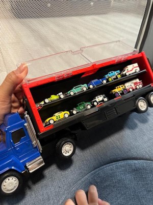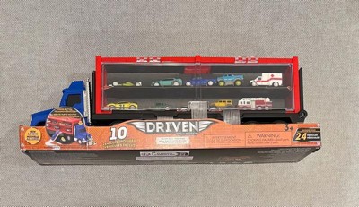 DRIVEN by Battat Pocket Car Carrier Truck with 10 Cars: Metal & Plastic Toy Semi Truck, 13-Piece Set
