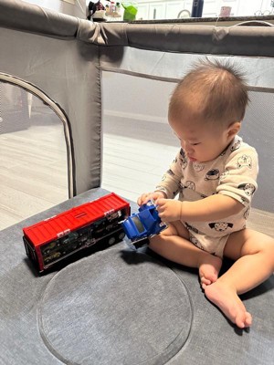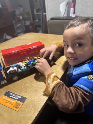 My little guy loves this car carrier truck set! The sides open and he can arrange the 10 mini vehicles inside. We also love that you can buy additional mini vehicles (separately). This was the perfect Christmas present for a truck loving toddler