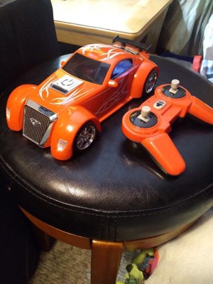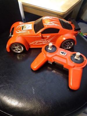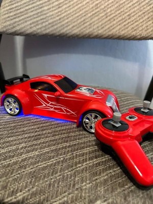 [This review was collected as part of a promotion.] My boys love this remote control sports car. It is very easy to drive. There's a button on the remote to press and the car will flash colored lights. It goes pretty fast. Turning takes a little practice to gage. I've only tried it in the house on hardwood floors so not sure how it would be if we took it out to the streets yet.