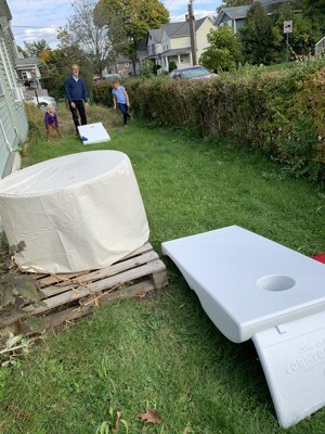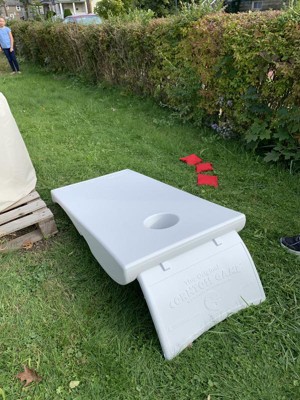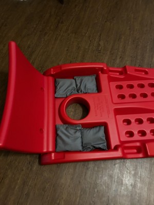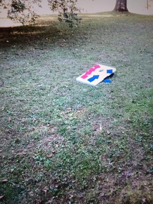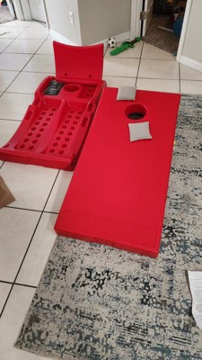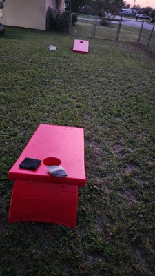[This review was collected as part of a promotion.] I bought this a week ago best decision I made. I was in need of something to do outside for the kids to do , My kids always get bored and when I went out this product was there and I knew it was the one . I made my purchase later on that day I took it out it was very easy to setup , this product definitely has great quality hard plastic makes it better through our rough season changes . It's got a perfect pitch to it nice size hole in each one comes with two sides I truly love the color Red, and truly its awesome the four beanbags they are perfect in Wright for great tossing . You can use this game on the driveway , grass it really is your choice ive tried both work amazing and I'm very blessed to have this it's also great for us adults too .