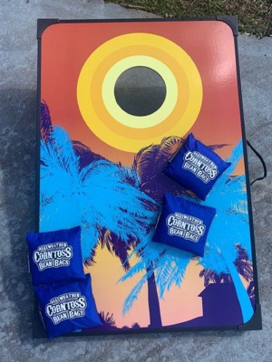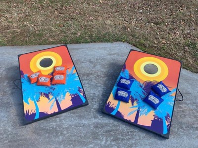 Driveway Games Weatherproof UV-Resistant Lightweight Tailgate Bean Bag Toss Board Cornhole Set w/4 Blue & 4 Orange Bags & Portable Carry Bag, Tropical