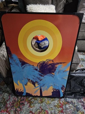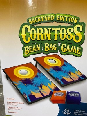[This review was collected as part of a promotion.] Received product and noticed that it came in a sturdy carrying case. The items were easy to set up and take down. The package includes 2 tailgate-sized targets and 8 bean bags that are weather proof. This game is fun for the entire family!