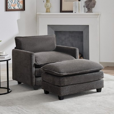 Dronkon 57in Indoor Lounge Chair with Ottoman, Sleeper Sofa Chaise Lounge for Living Room, Black