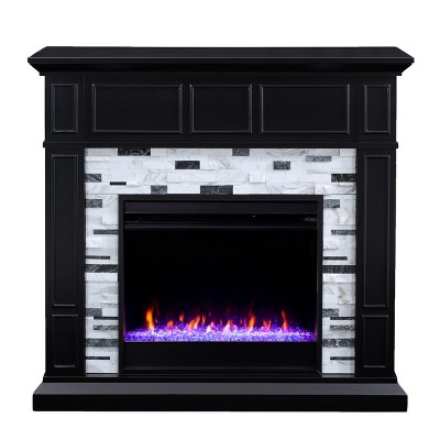 Sold as a set of multiple boxes. Upgrade your modern living space with this authentic marble electric fireplace mantel. Shimmering faux crystal adds ambiance with flickering LED flames, alternating colors, and lifelike embers, all controlled from the convenience of your sofa. Handsome woodwork complements the tiled stone surround, blocking in your style. Add elegant ambiance to your home office or dining room with this electric fireplace.