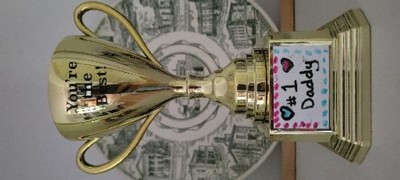 This was a nice trophy. Heavy and well made. The only issue was how easily the dry erase came off. It took a few tries to get it right as my daughter's (9 & 7) were writing it out to dad for father's day.