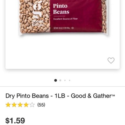 Serve up your favorite Southwestern classics with these Pinto Beans from Good & Gather™. These tasty pinto beans are a must-have pantry staple that are perfect for soups, chilies and other dishes. Pinto beans are the number one bean in America and are most commonly enjoyed in Southwestern dishes, like refried beans, bean soup or pinto beans and rice. You can also use them to add body to a wide variety of soup-based meals. Aside from being delicious, they're also an excellent source of fiber, making them a great choice for family dinners or entertaining.