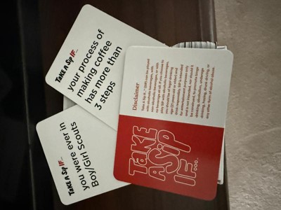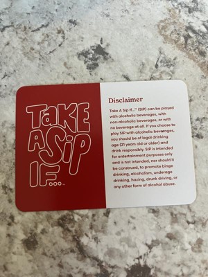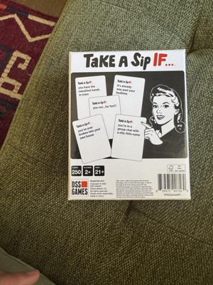 This fun drinking card game will make you laugh and get to know each other! For 2 or more adult ( over 21) players, Take a Sip If … comes with 250 question cards. Simply grab some friends, pour some drinks and pull a card!