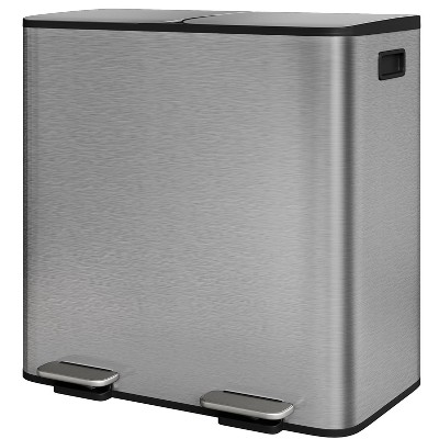Dual Compartment Kitchen Trash Cans, Stainless Steel Step Trash Can with Soft-Close Lid, Rectangle Garbage Bin