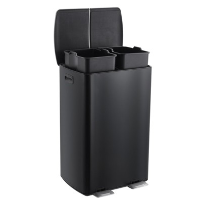 - Dual Compartments for Smart Waste Sorting: This large double kitchen trash can is designed for effortless waste management. Separate trash and recycling with two dedicated 8-gallon (30L) compartments. Each side features an independent lid and pedal.