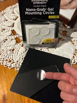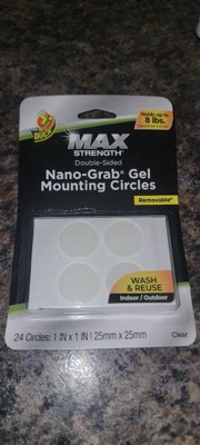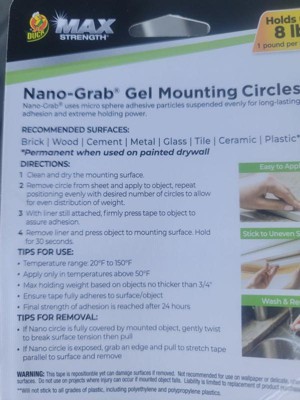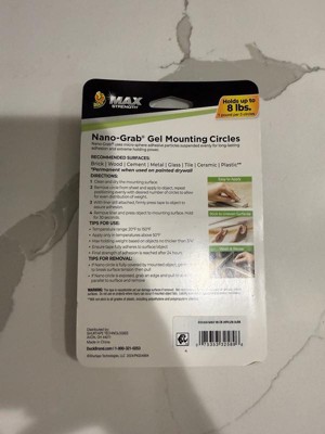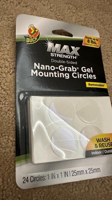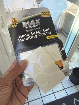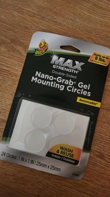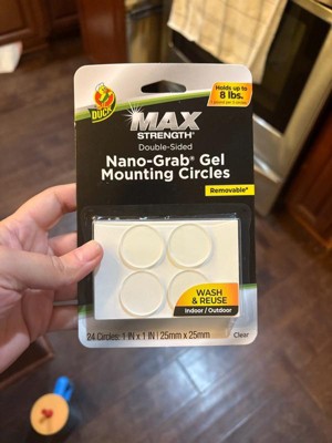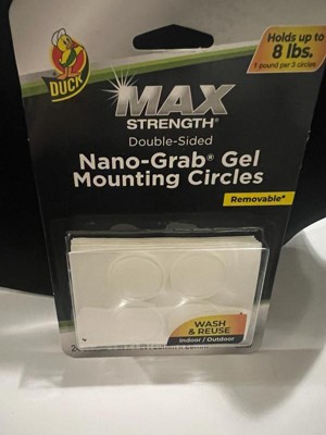 [This review was collected as part of a promotion.] I received the Duck Max-Strength Nano-Grab Gel Mounting circles that hold up to 8 lbs. I really like these because their removable. Their wash and reuse, and you can use them inside and out. I haven't figured out what to use these on, but when I do, I'll come back and show a picture of it. I did use them to hold a cup under the counter, and it held great. Im really glad I received these they are going to come in handy for the holidays. I really like that their double sided too. They work on wood, brick, glass, tile, ceramic, and plastic. Thank you, influenster. im really looking forward to using these.
