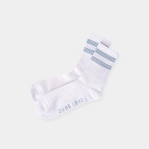 The Varsity Socks in Dusty Blue bring that classic athletic look with a pop of color and comfort you’ll actually want to wear all day. Ribbed for a secure fit and cushioned just enough, they’re built for movement — or doing absolutely nothing at all. Finished with varsity-inspired stripes and a subtle Dumb Love logo, they’re an easy win from the ground up.