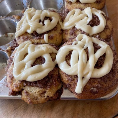 - Muffin mix, Cinnabon cinnamon brown sugar mix & cream cheese flavored icing