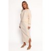 Wrap yourself in effortless style with the Duncan Knit Dress in Cream. This midi-length staple pairs timeless elegance with contemporary comfort, thanks to its ultra-soft stretch ribbed knit fabric that effortlessly moves with you.