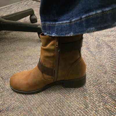 Dunes Max Motorcycle Womens Ankle Boots – Comfortable Booties for Women with Zipper & Buckle, Combat Boots Style, Memory Foam, Wide Width Options