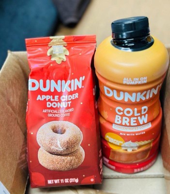 The sweater weather vibes have arrived, and they’ve never been cozier. Dunkin’ Apple Cider Donut artificially flavored coffee is like a fall festival in every sip. It’s a bold and rich medium roast coffee that blends the sweet tang of apple cider with the warm flavors of a cinnamon sugar-dusted donut. And, of course, it delivers that great Dunkin’ coffee taste you love. Brew yourself a cup any way you like — this versatile ground coffee is ready for your coffee pot, pour-over or French press. No matter how you brew it, it’s sure to spice up your season. But it’s only here for fall — so get it before it blows away.
