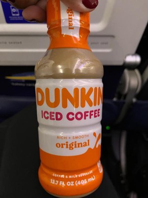 - 13.7 fl oz bottle of Dunkin' Original Iced Coffee