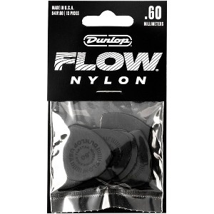 The Dunlop Flow nylon guitar picks combine cutting-edge materials with a refined design to enhance tone and playing technique. Crafted from a custom nylon blend, these picks deliver the warm, smooth attack that nylon is known for, while maintaining durability and precision for aggressive playing styles. The Flow shape features a sharp tip for accurate note definition, ensuring every strike is crisp and clear. With re-engineered beveled edges and an enhanced grip pattern, Dunlop has perfected the Flow design for fluid transitions and comfortable handling. Whether 're performing intricate solos or rhythm-heavy strumming, these picks deliver consistent performance and tonal clarity that elevates sound.